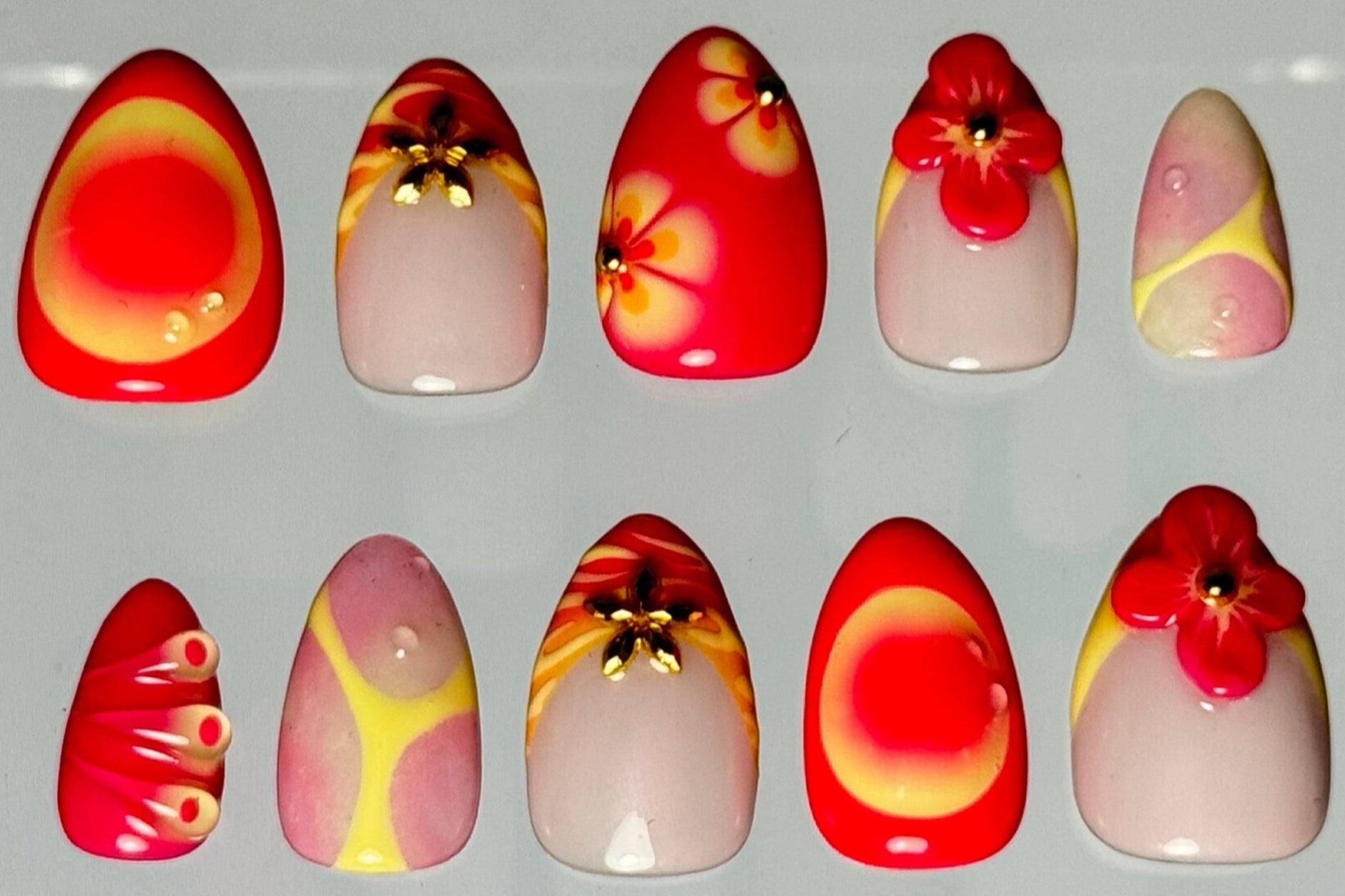 With this exotic mix of bright pink and sunny yellow hues, this set features dreamy auras, flowers that jump at you, and shiny gold accents. Let The Golden Blossom elevate your look in minutes.